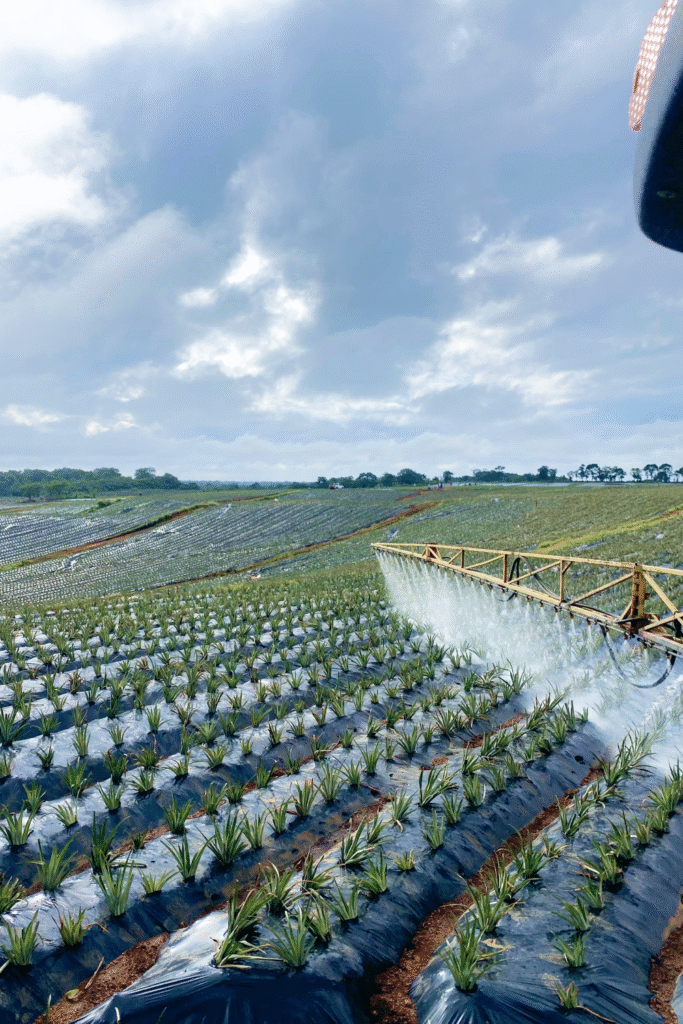 Nuestro manejo integrado de plagas emplea productos permitidos en piña, aplicando solo las dosis mínimas necesarias y únicamente cuando son requeridos.